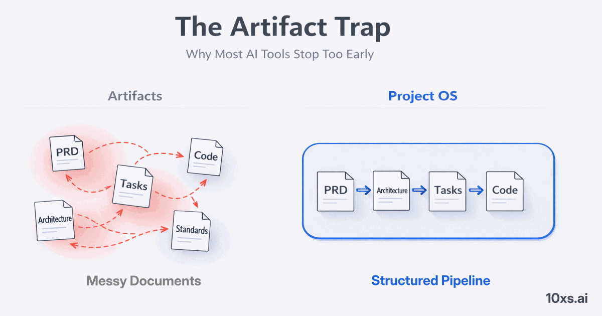 The industry has spent two years building better generators. Better PRD writers. Better architecture diagrammers. Better code generators. And they work — the quality of AI-generated artifacts is genuinely impressive.